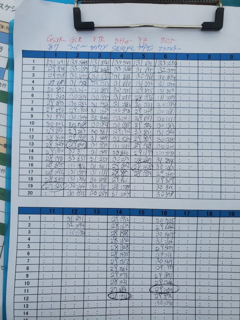 | 社長 | GSX-R750 | 1:29.029 | 111.54% |